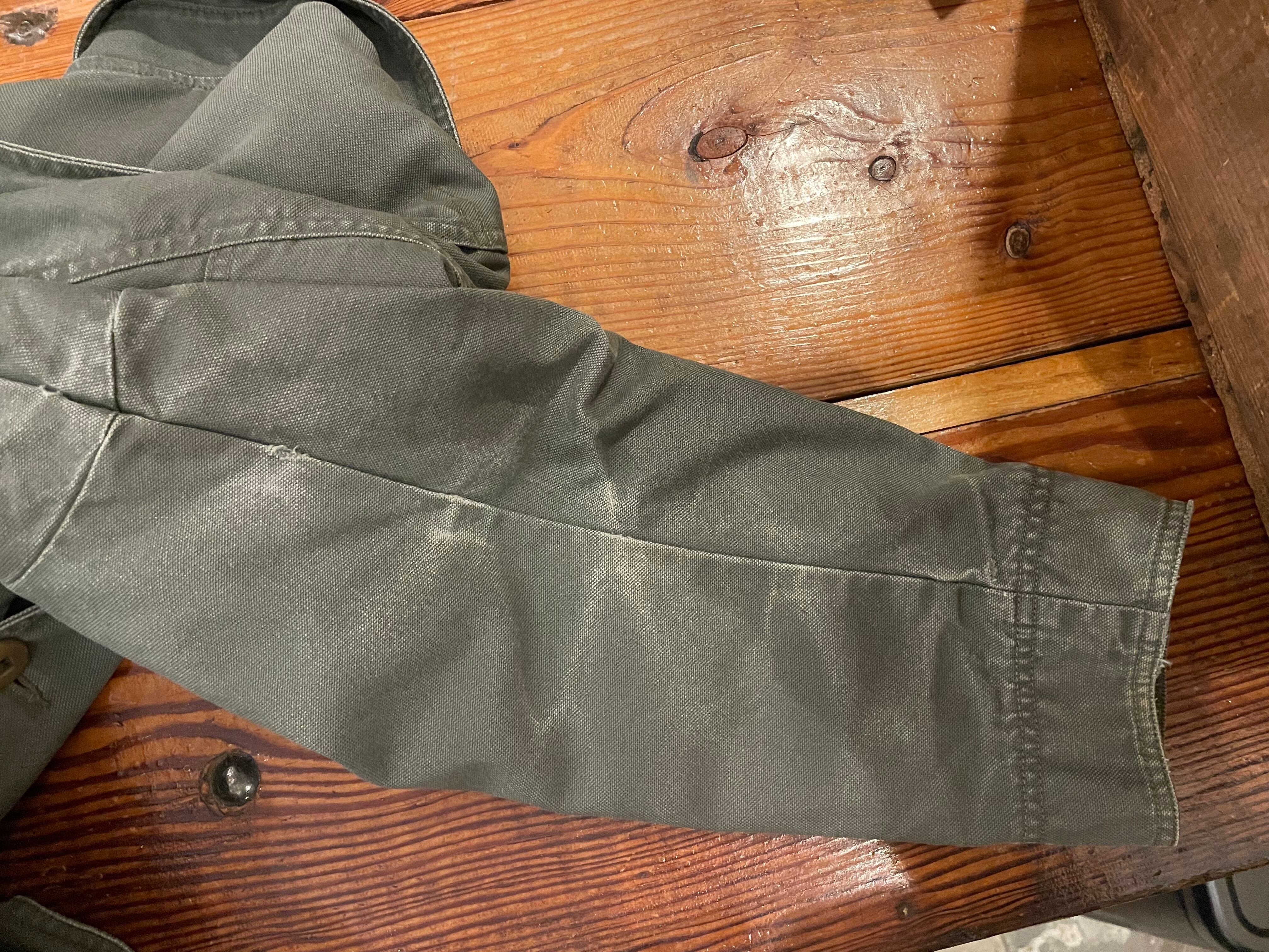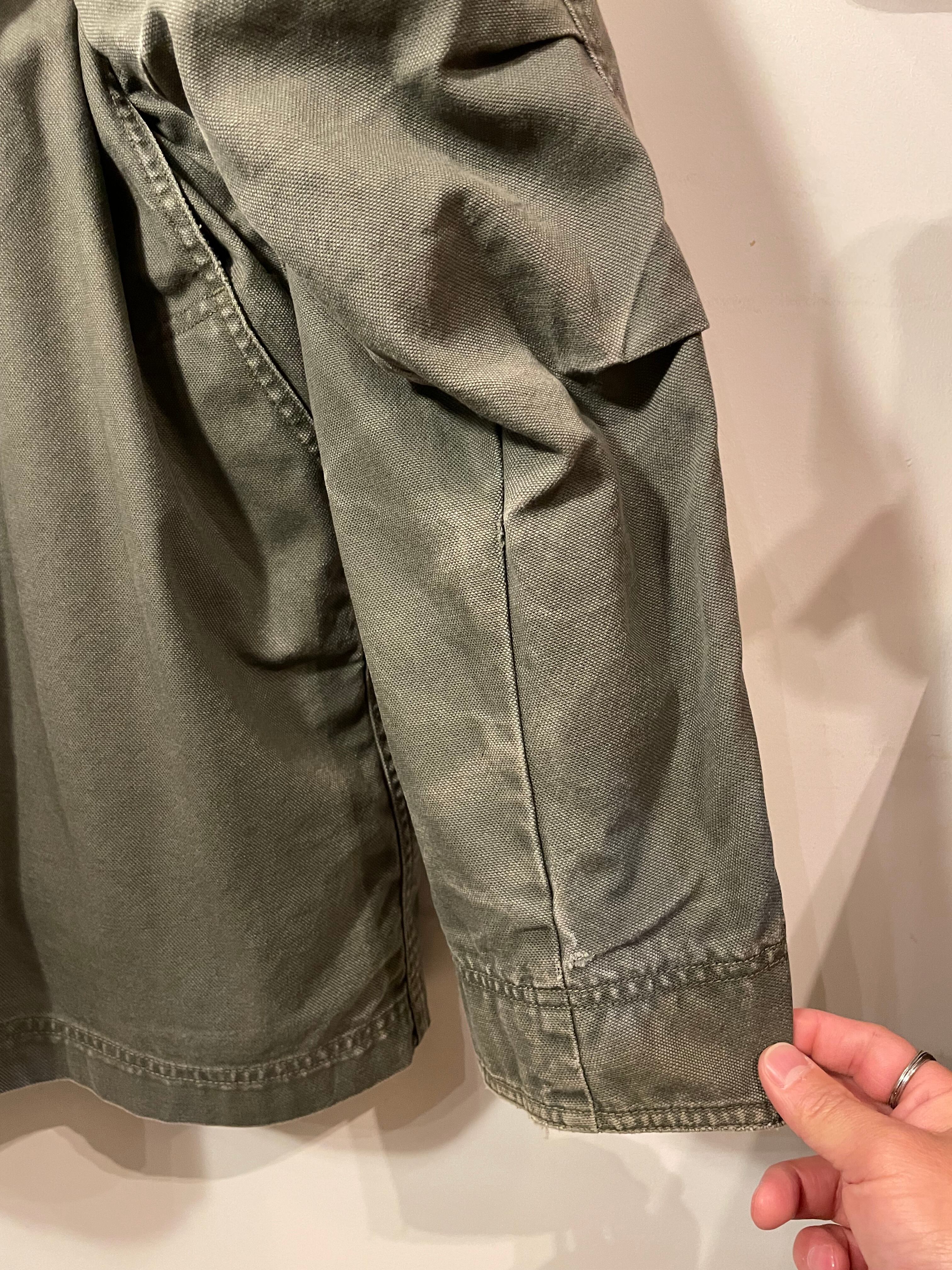 カラーはモスグリーンでフェードにより肩や腕にはデニムの様なハチノス充たりも出てます。
